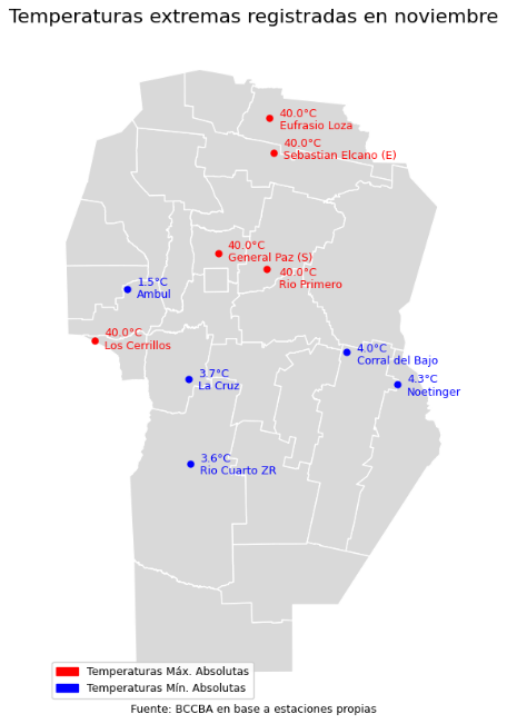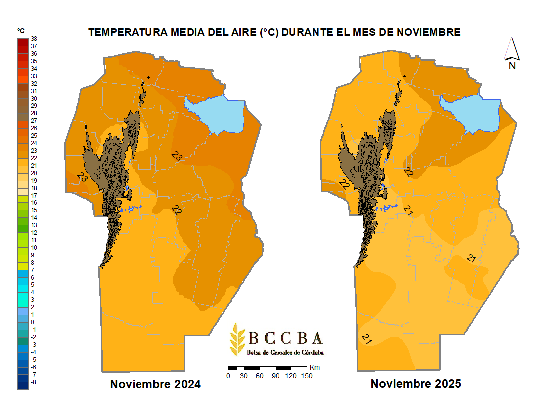 A partir de los datos proporcionados por la Red de Estaciones Meteorológicas de la Bolsa de Cereales de Córdoba, presentamos el informe agrometeorológico que refleja el análisis de las variables temperaturas del aire y precipitaciones para la provincia de Córdoba en el mes de NOVIEMBRE del año 2025.
