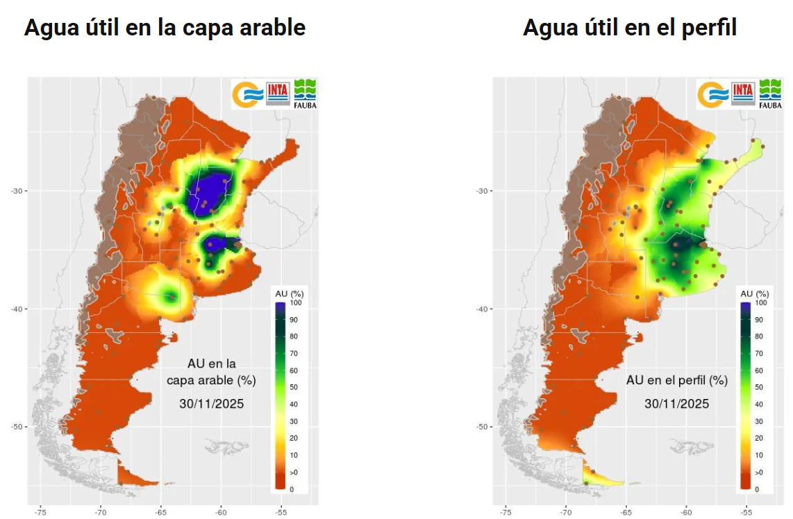 Figura 6. Contenido de agua útil en el suelo a finales de noviembre (SMN-UBA).