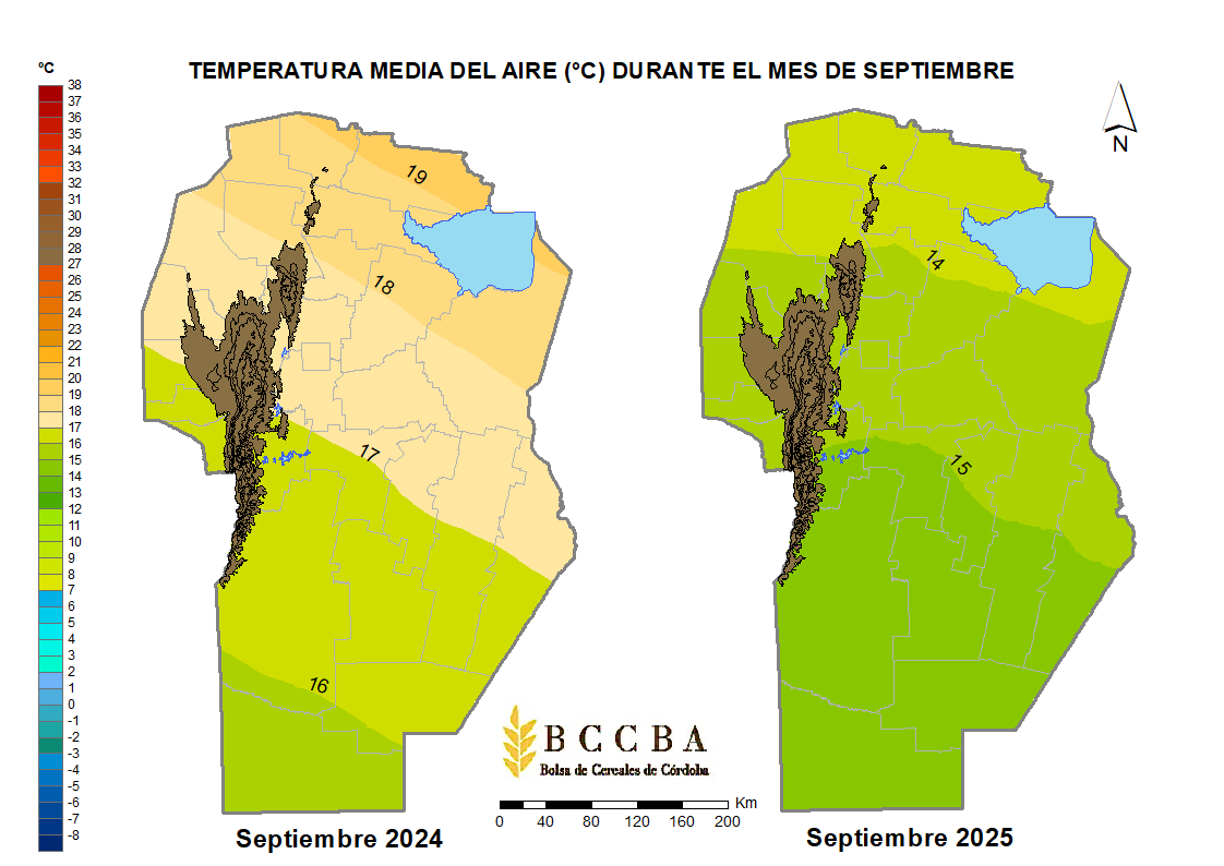 INFORME AGROMETEOROLÓGICO | Septiembre 2025: moderadas lluvias en el centro y sudeste de Córdoba y y descenso térmico en la provincia.