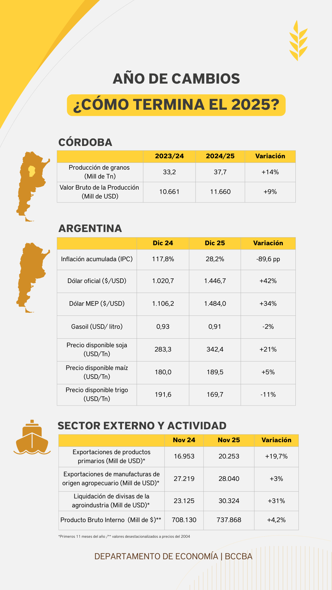¿Cómo evolucionaron las principales variables para el agro en el 2025?