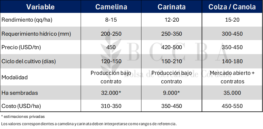 Tabla N°1: Tabla comparativa entre colza, camelina y carinata.