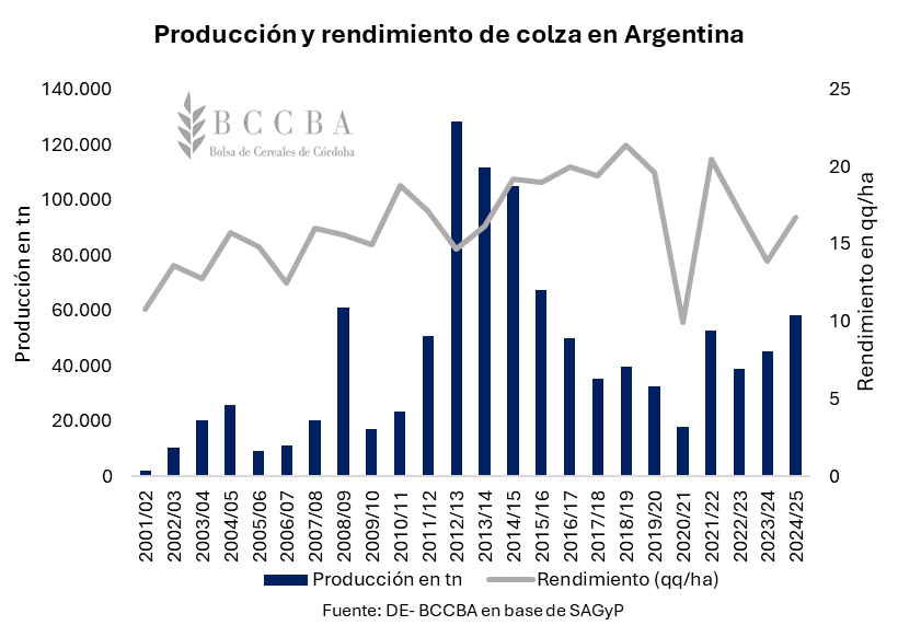 La colza es la tercer oleaginosa más producida a nivel mundial, por detrás de la soja y de la palma destinada a la producción de aceites y, la que tiene una mayor trayectoria en el país de las crucíferas consideradas.