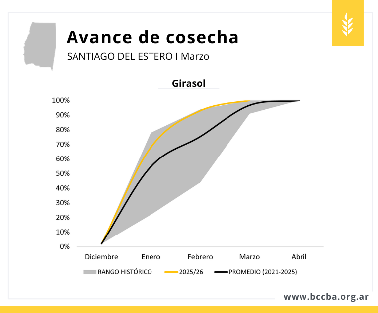 Las lluvias de comienzos de marzo mejoraron el panorama de los cultivos estivales y sostuvieron expectativas favorables para la campaña. La primera estimación productiva proyecta un escenario de buenos rindes, con resultados especialmente destacados en soja y maíz. En girasol, con la cosecha ya finalizada, la campaña concluyó con un volumen de producción récord, según los registros de la BCCBA.