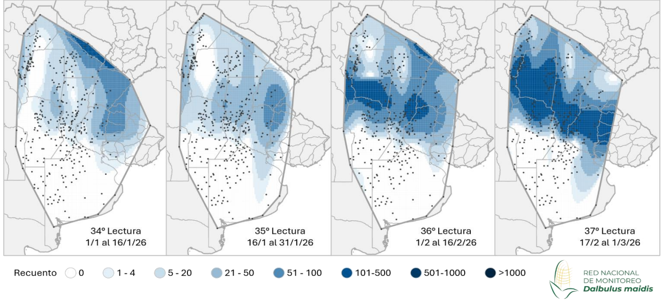 En sorgo, también se registró presencia de cogollero, mientras que el pulgón amarillo (Melanaphis sacchari) se mantuvo en niveles bajos.