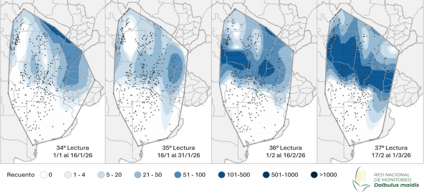 En síntesis, si bien persisten secuelas del estrés estival en algunos ambientes y fechas de siembra, el escenario actual muestra una condición general más favorable que la observada a fines de enero y principios de febrero, con predominio de lotes en buen estado sanitario y agronómico.
