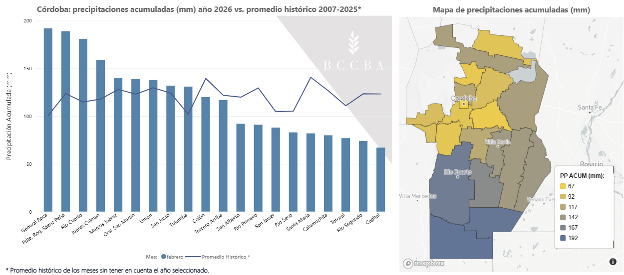Más allá de la mejora en la producción esperada, persisten reportes de alta variabilidad entre zonas, siendo el ambiente y la fecha de siembra los principales factores explicativos. En localidades del centro de los departamentos Marcos Juárez y Unión se mencionaron pérdidas de potencial de entre 20 y 30%, principalmente en maíz y girasol, asociadas a eventos de viento fuerte y granizo. Los datos detallados por departamento pueden consultarse en el enlace a los tableros de estimaciones actuales: