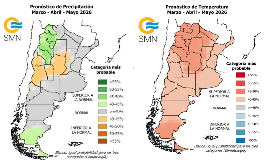 Para los meses febrero-marzo-abril, el SMN pronostica lluvias inferiores a lo normal en casi toda la provincia, a excepción del sur del departamento General Roca y parte del departamento Ischilín, donde se espera que las lluvias sean normales. En cuanto a las temperaturas, sigue esperándose que se mantengan por encima de lo normal.