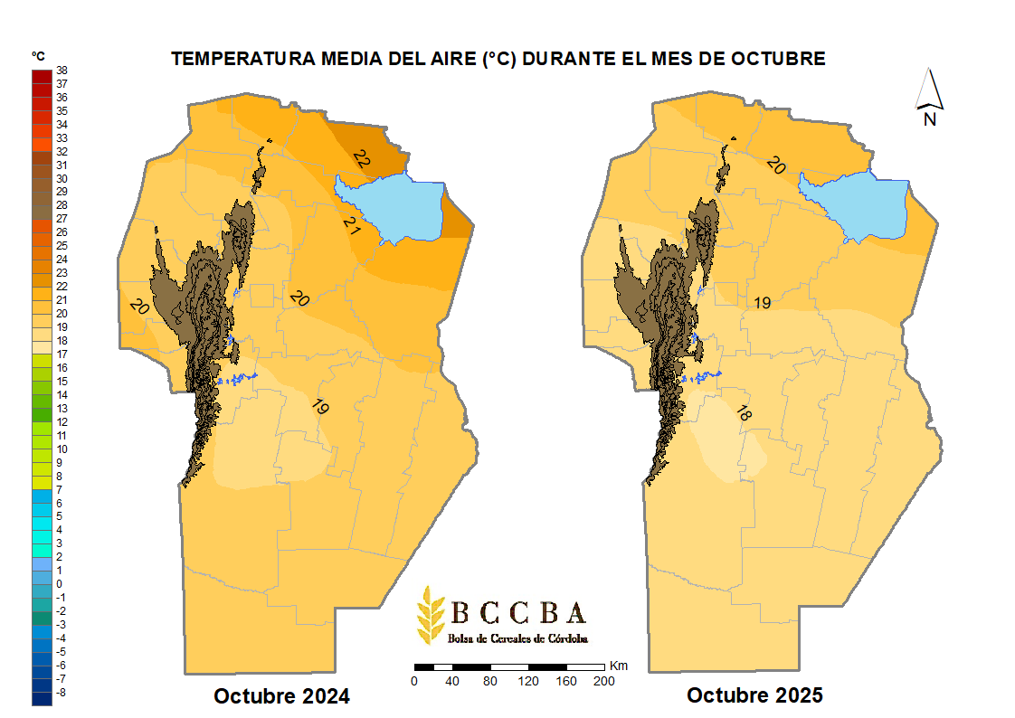 A partir de los datos proporcionados por la Red de Estaciones Meteorológicas de la Bolsa de Cereales de Córdoba, presentamos el informe agrometeorológico que refleja el análisis de las variables temperaturas del aire y precipitaciones para la provincia de Córdoba en el mes de octubre del año 2025.