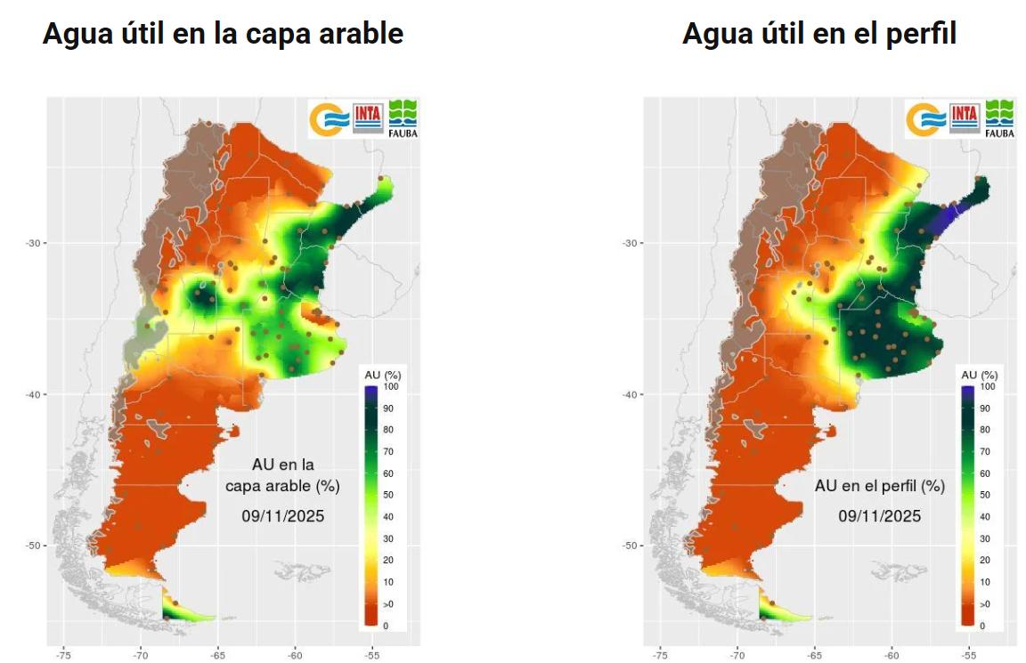 Figura 5. Contenido de agua útil en el suelo a comienzos de noviembre 2025.
