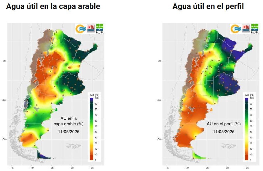 El agua útil en el perfil, a la fecha de relevamiento, seguía siendo favorable, no así en la capa arable, debido a la falta de lluvias en los últimos días.