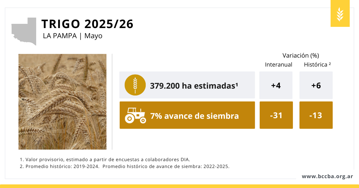 INFORME AGRONÓMICO | La Pampa. El perfil hídrico impulsa una leve suba en la superficie de trigo