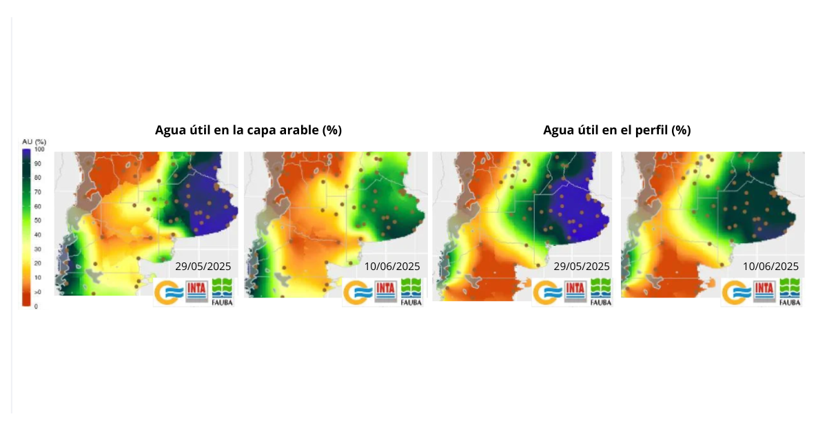 Las lluvias de mayo fueron escasas y muy inferiores al histórico, lo que permitió el avance de la cosecha y la liberación de los lotes para la siembra invernal. Según los últimos mapas del SMN, el agua útil en el perfil continúa siendo favorable, mientras que la humedad en la capa arable disminuyó debido a la falta de lluvias. Para el trimestre junio – agosto, se prevé mayor probabilidad de temperaturas superiores a la normal mientras que las precipitaciones muestran igual probabilidad de ser inferiores, normales o superiores a lo normal.