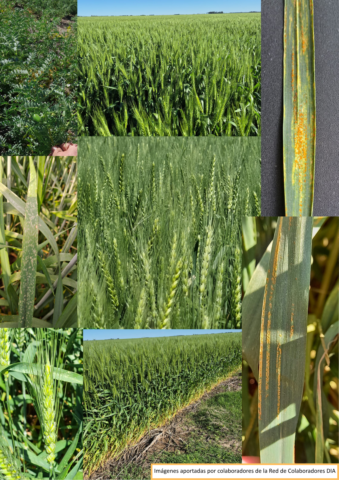 En trigo, se observó una alta incidencia de chinches, principalmente chinche verde (Nezara viridula), chinche de la alfalfa (Piezodorus guildinii), chinche de los cuernitos (Dichelops furcatus), con presencia generalizada e incidencia de media a alta. Otras plagas como arañuela negra (Petrobia latens), oruga militar (Pseudaletia adultera) y pulgones se registraron en niveles bajos y sin generar daños relevantes. En cuanto a enfermedades, predominan la roya anaranjada (Puccinia triticina) y amarilla (Puccinia striiformis) con incidencia media, y casos aislados de mancha amarilla (Drechslera tritici-repentis) y tizón bacteriano (Pseudomonas syringae pv. Syringae) en baja severidad. En general, el cultivo presenta un buen estado sanitario debido a que los controles fueron realizados de manera oportuna.