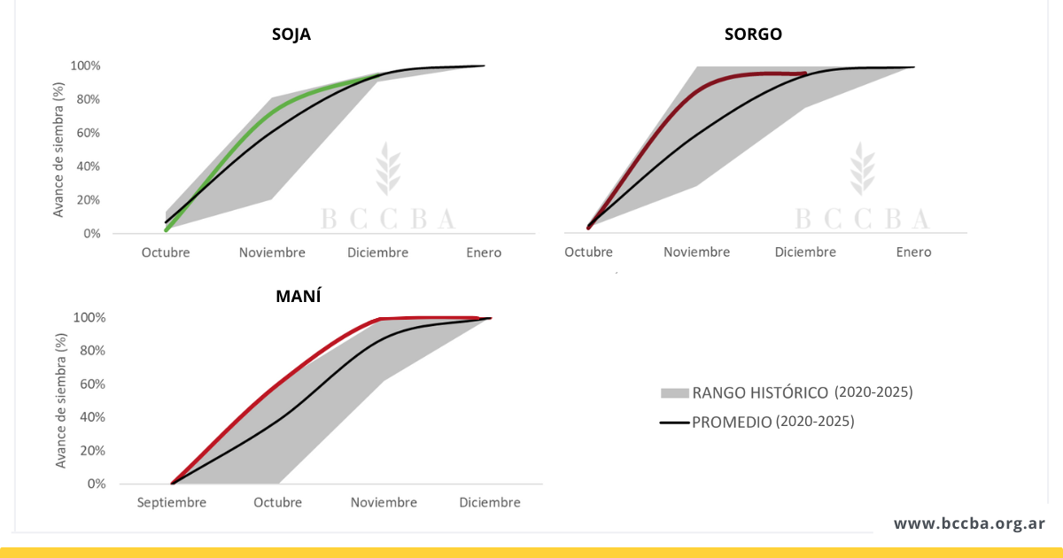 Actualmente, el maíz temprano, el girasol y el maní se encuentran mayormente en etapas reproductivas, mientras que el maíz tardío, la soja y el sorgo continúan en estadios vegetativos, lo que aún les otorga cierta capacidad de tolerar el estrés ambiental. Sin embargo, de no registrarse nuevas precipitaciones en los próximos días, la persistencia de altas temperaturas podría comprometer el buen estado general de los cultivos.